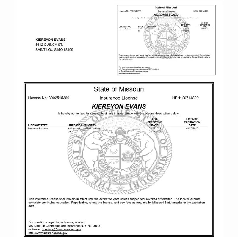I'm Kiereyon Evans with doing business as Kiereyon Evans - My Verified Advisor